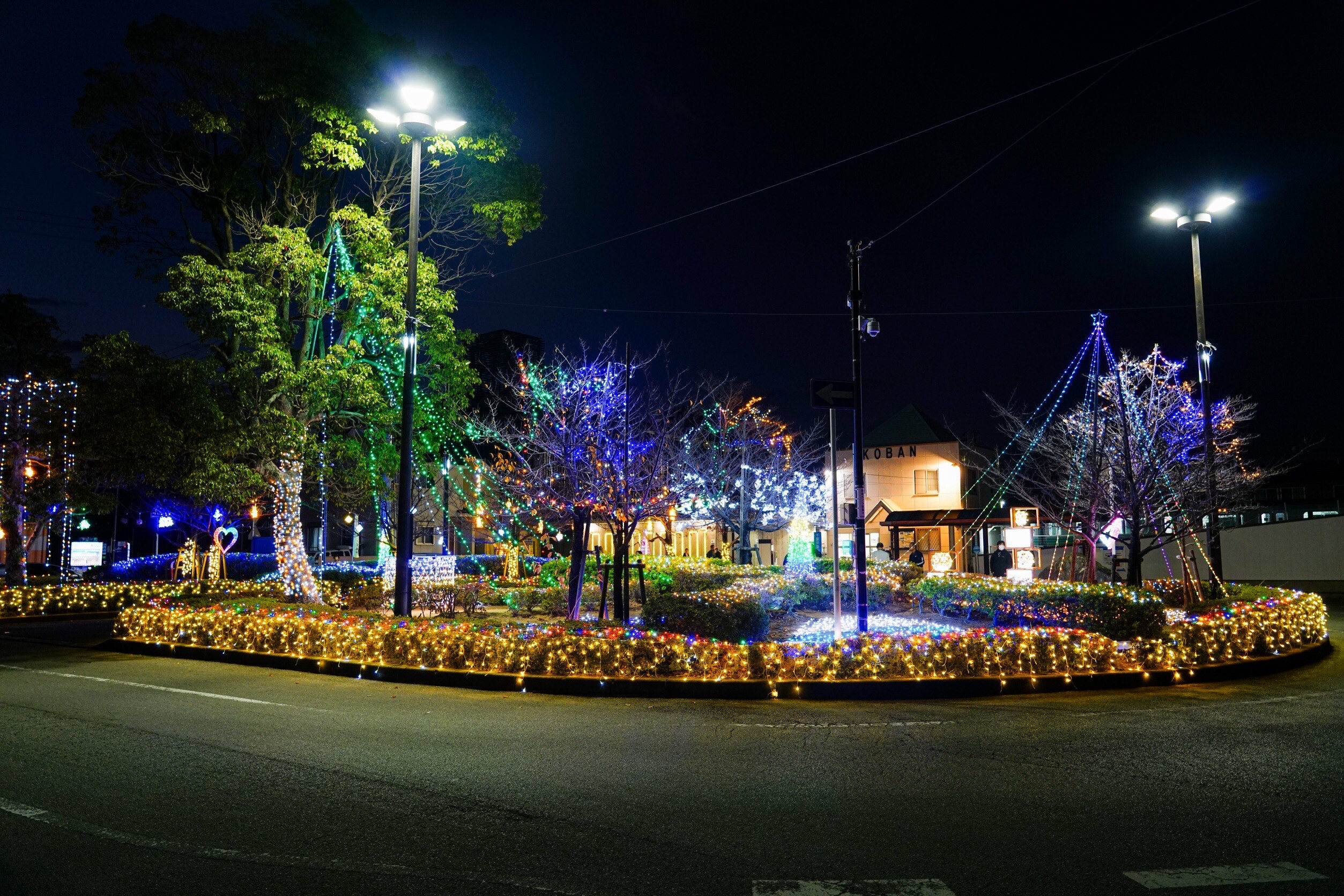 植栽帯に広がる色とりどりのイルミネーションがロータリーを彩ります。