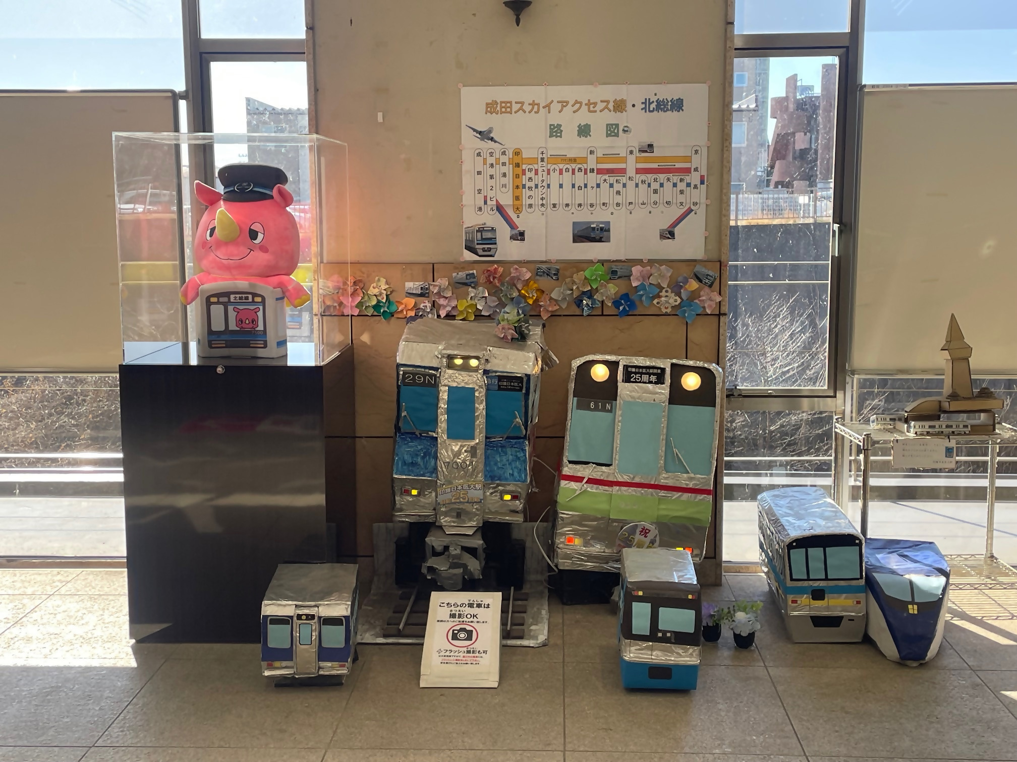 北総線印西牧の原駅に「ほくそう制服電車いんザイ君」が設置されました。