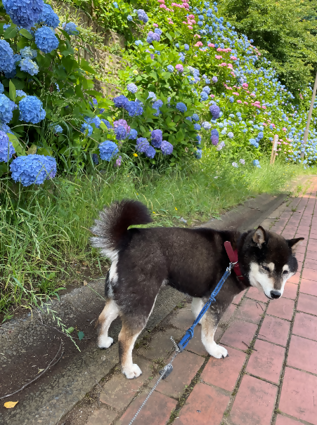 応募理由:紫陽花は手入れをきちんとしないと翌年も咲かないが、ここの万葉公園の紫陽花は毎年綺麗にたくさん咲いているところが素晴らしいと思う。心なしか愛犬もその景色に歓喜しているように見える。