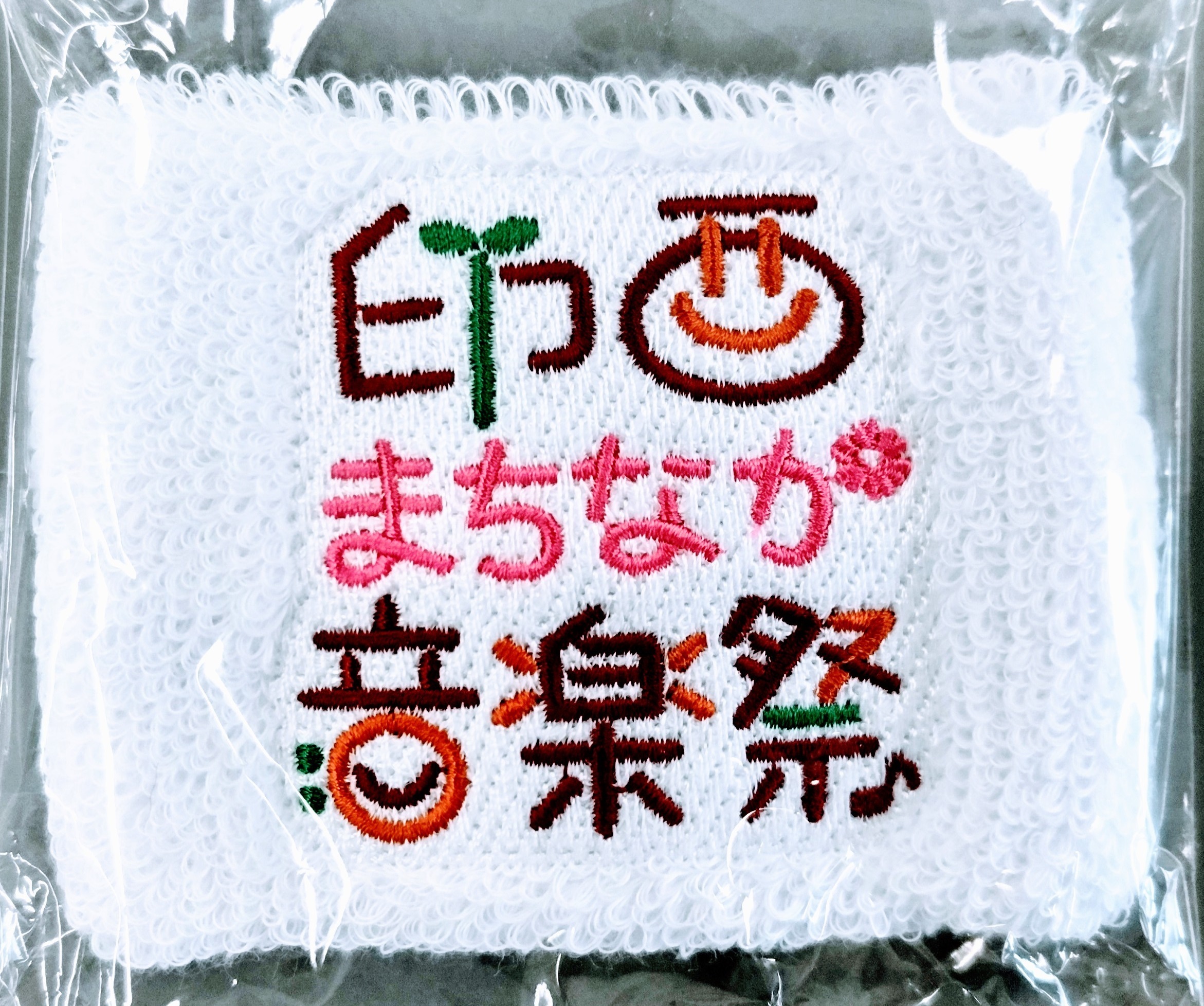 印西まちなか音楽祭のロゴデザインが刺繍されたリストバンドです。