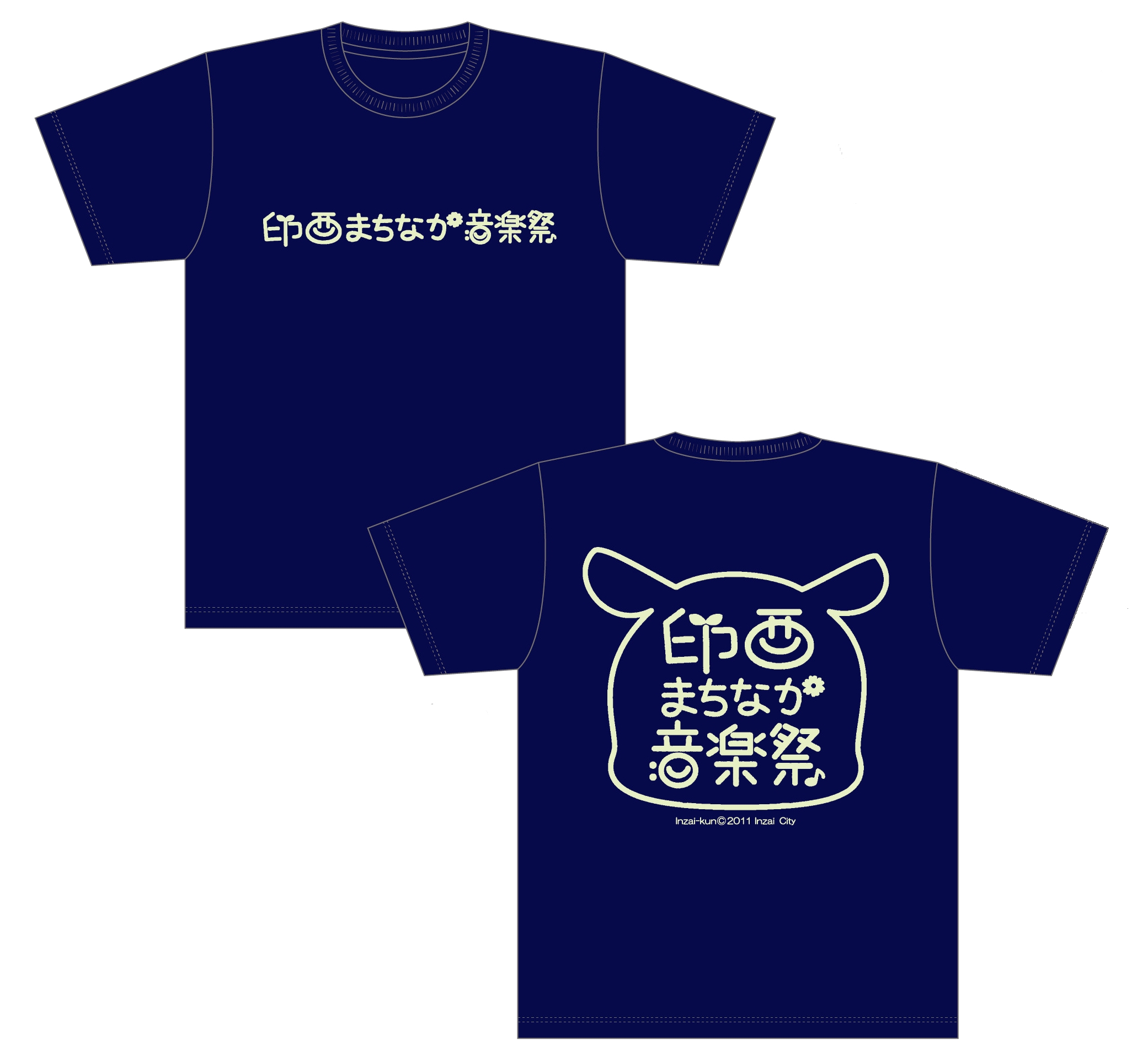 いんザイ君の顔をかたどったロゴが描かれている、印西まちなか音楽祭限定デザインのTシャツです。このデザインのいんザイ君はここでしか買えません。数に限りがありますので、早めにお買い求めください。