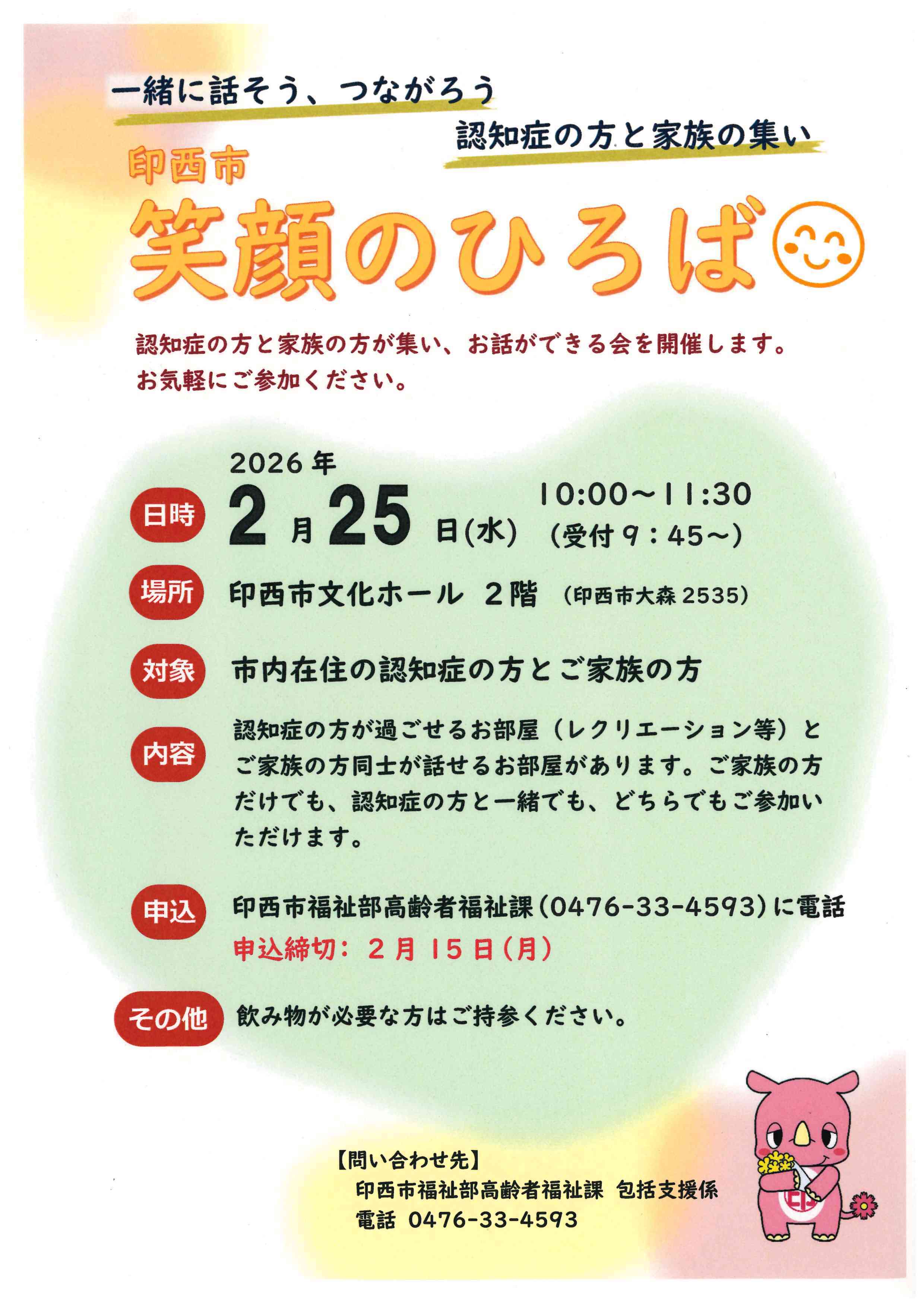 対象は、印西市内在住の認知症の方とご家族の方