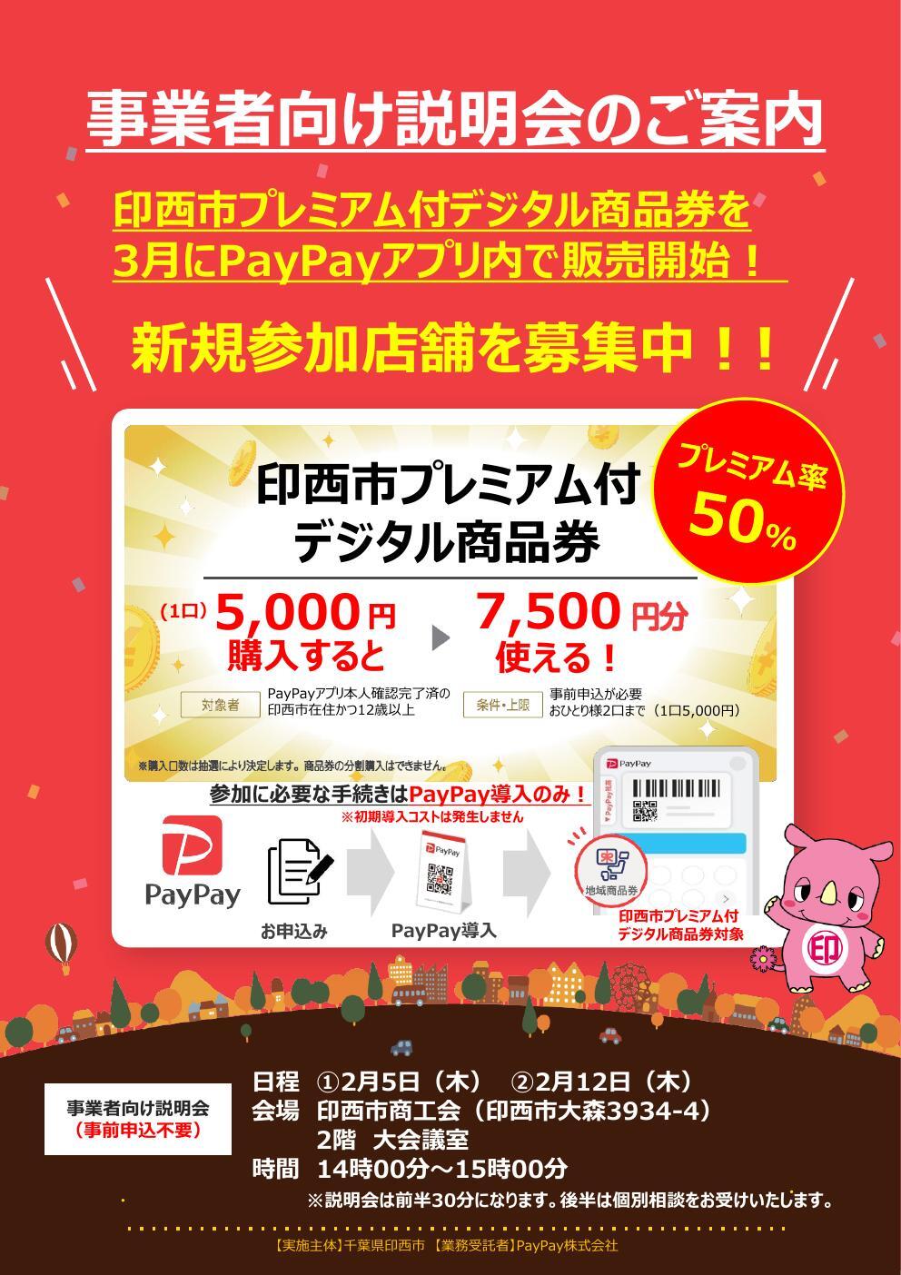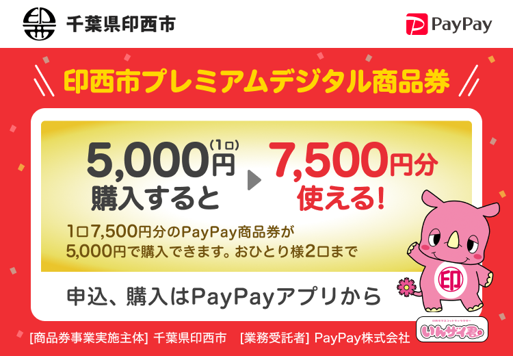物価高騰に直面する市民生活を支援し、地域経済の活性化を図るため、キャッシュレス決済アプリ「PayPay」を活用した印西市プレミアム付デジタル商品券事業を実施します。