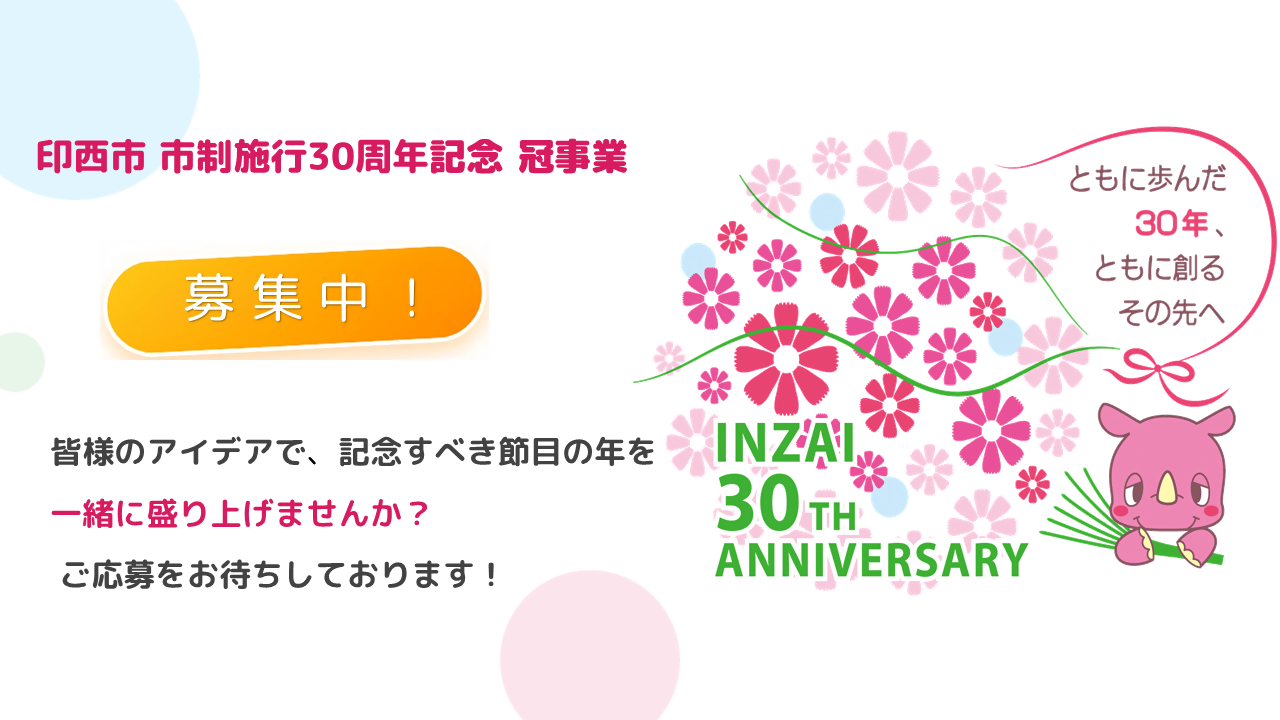 ただし、「印西市市制施行30周年記念ロゴマーク・キャッチフレーズ」デザイン使用要領を遵守すること。