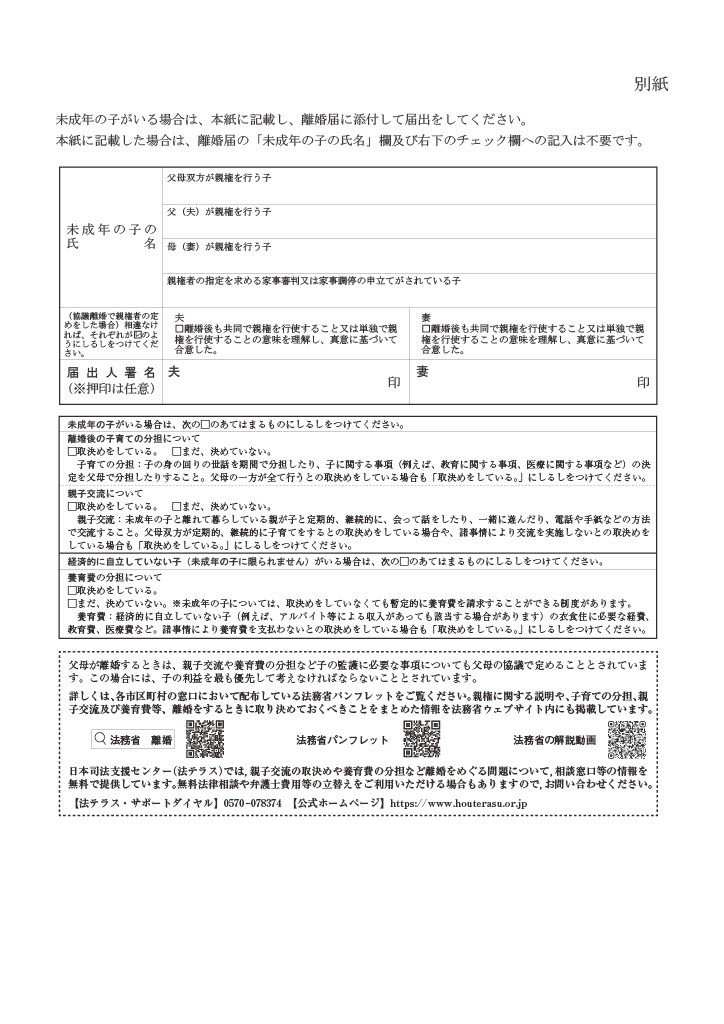 離婚届(別紙)(必ずA4サイズでプリントアウトし、離婚届旧様式に添付してください。)