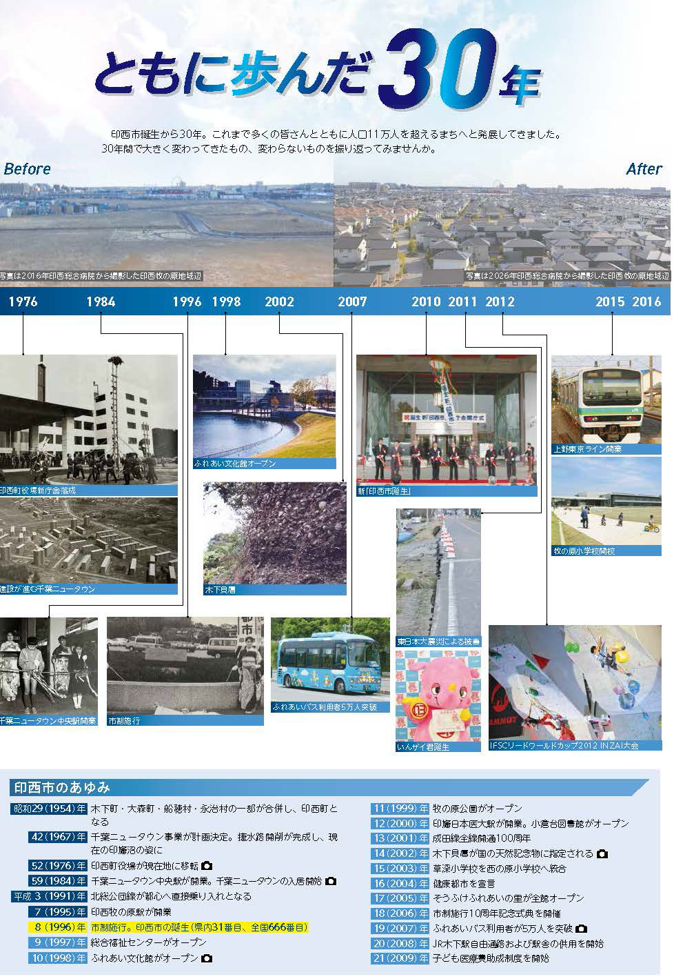印西市は、平成8年の市制施行から30周年という節目を迎えます。