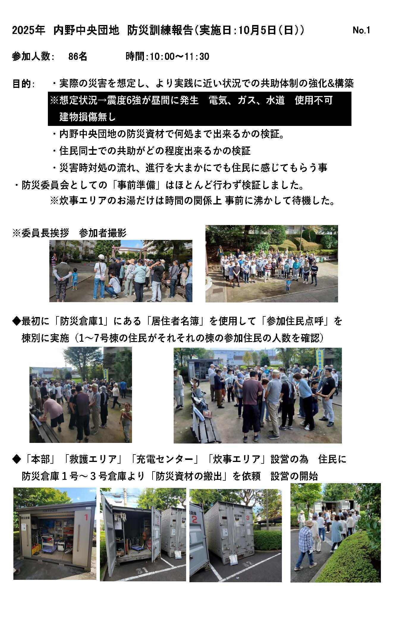 自主防災組織では、災害時に地域や近隣の方が互いに協力し合うことができるよう、避難訓練などの防災訓練が実施されています。ここでは、内野中央団地防災委員会の活動事例をご紹介します。