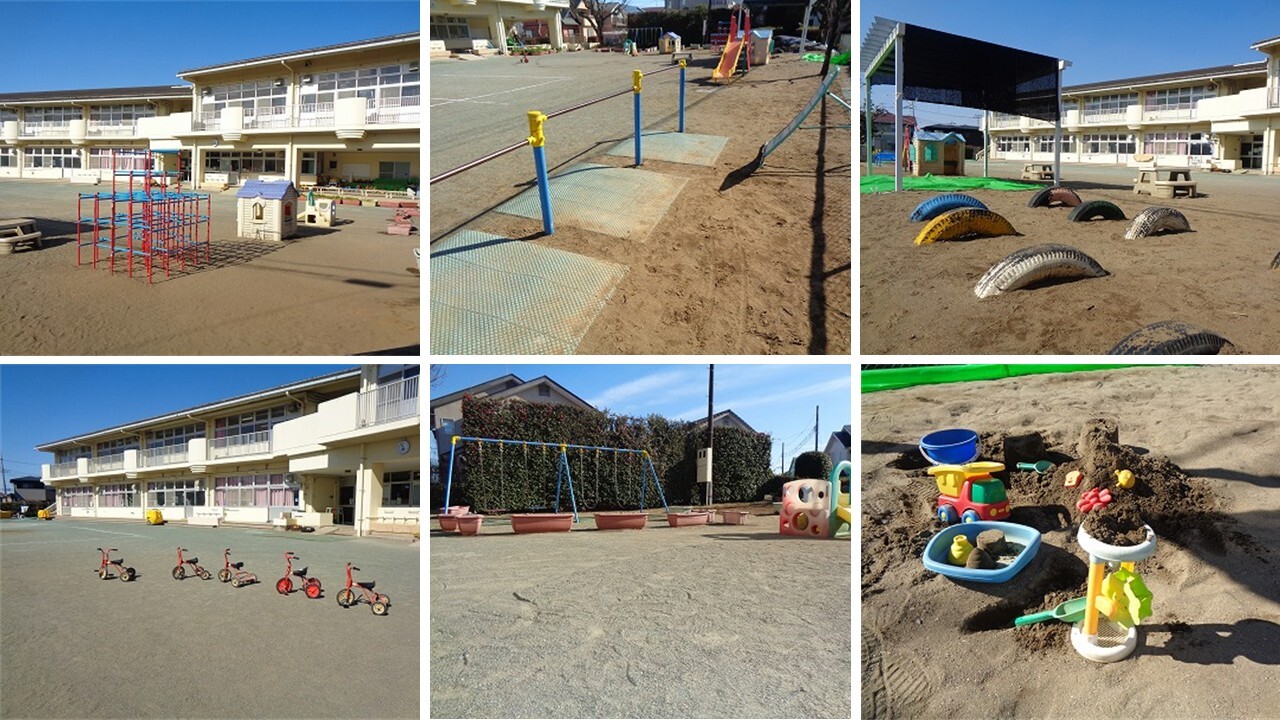 広い園庭では友達と一緒に体を 使って元気に遊んでいます。