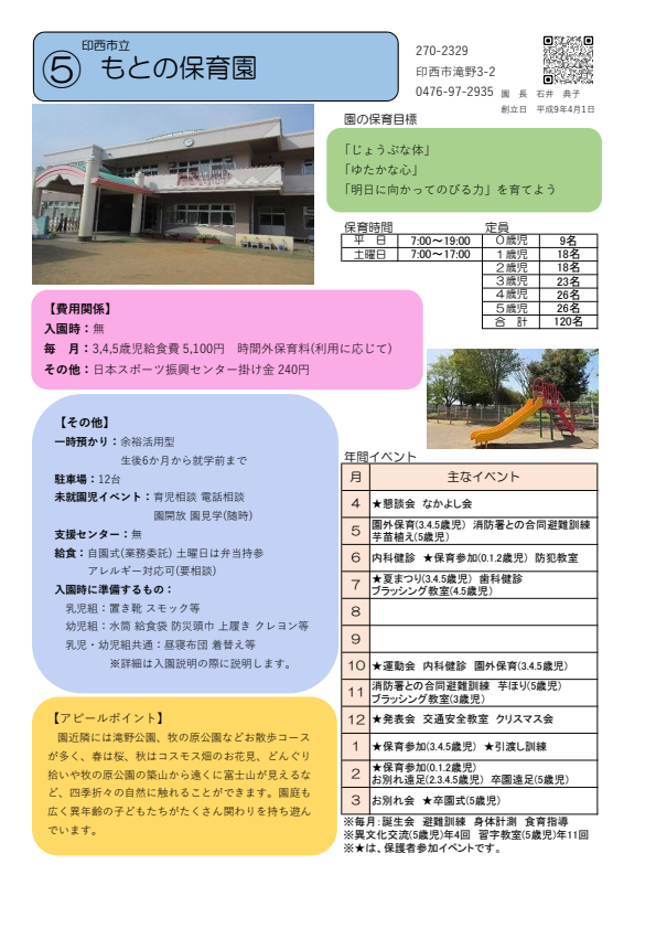 内科健診(年2回) 歯科健診 園外保育(春・秋) 卒園遠足