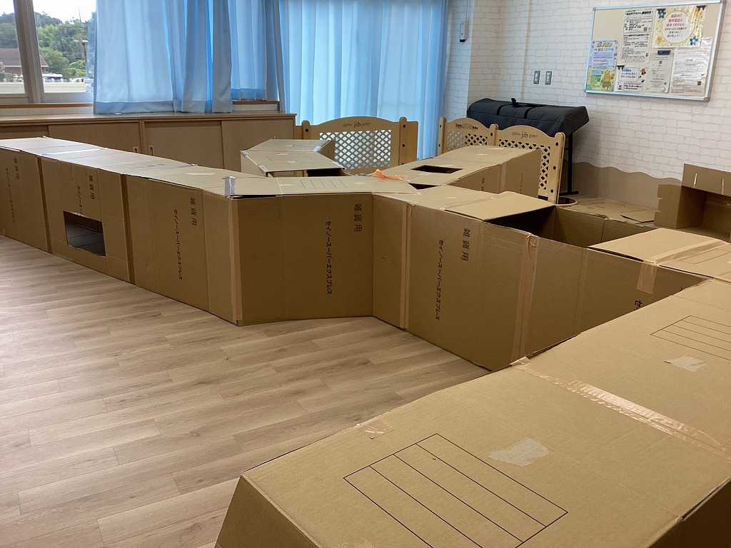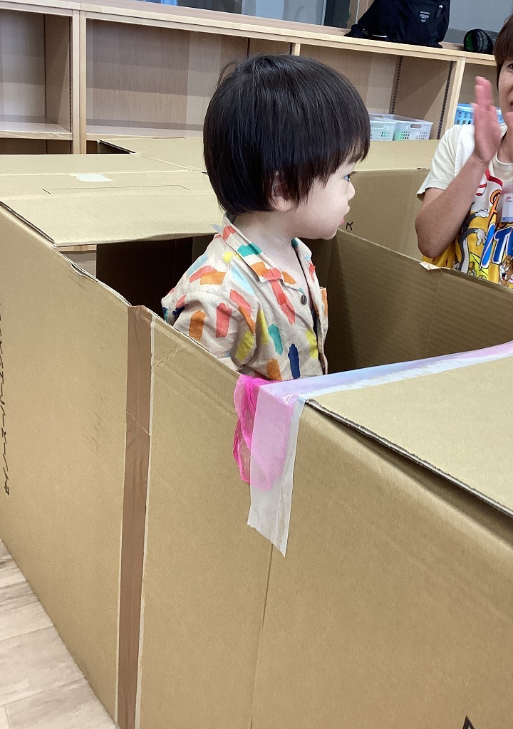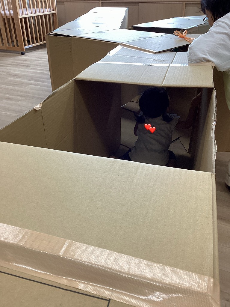 子育て拠点の日(水曜日・木曜日・金曜日)は、楽しい催し物を企画しています。9月3日・4日は「段ボールであそぼう!」でした。