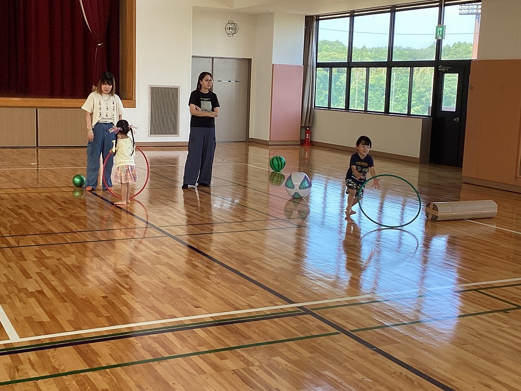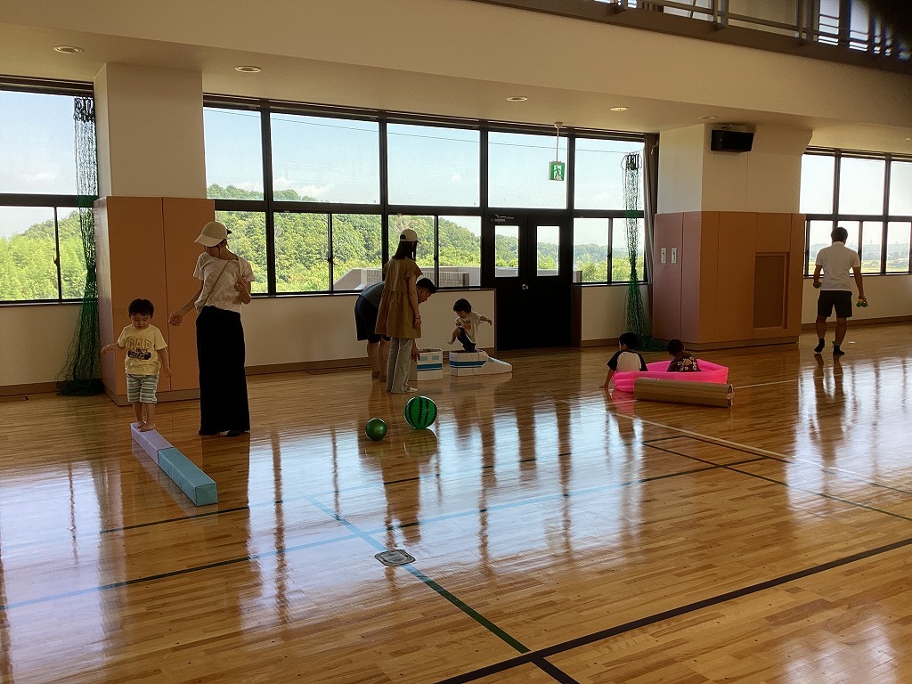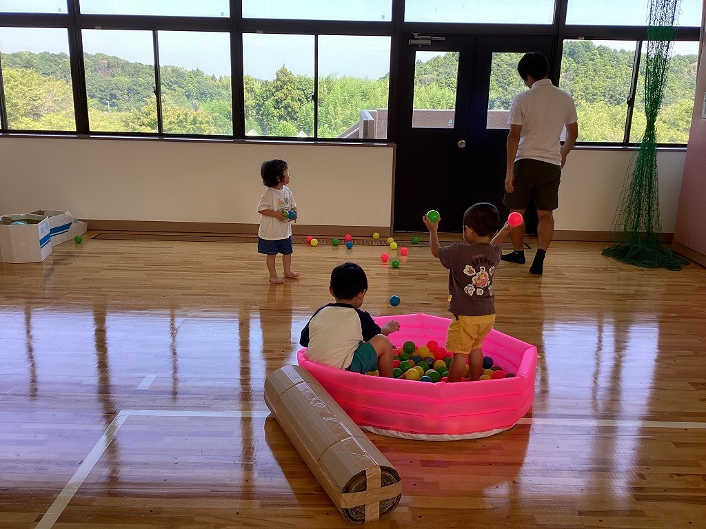8月29日(金)30日(土)の二日間本埜公民館3階の多目的ホールをお借りして「おもいっきり体を動かそう」の日としました。39組103名の方が遊びに来てくださいました。広いホールを走り回り、ボールを転がし大汗かいて遊んで帰っていました。ちょっと疲れたら2階に降りてきてちょっとブレイクタイムでおもちゃで遊び支援センターを満喫してくれていました。毎月行います。お便りをご覧ください。