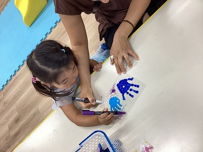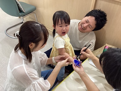 親子の手形が重なり合ったものや家族全員の手形が入ったもの、丁寧に絵を描いてくれたお子さんもいました。ご家族それぞれ、思い出に残る作品になってくれたら嬉しいです。51組127名のご参加でした。