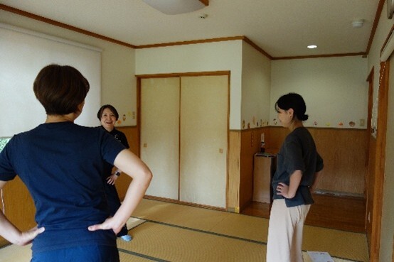 普段動かさない所を動かしたり、体幹を使った動きが多いので、シンプルな動きでも汗ばんでいましたよ。皆さんお子さんと離れてリフレッシュされていました。