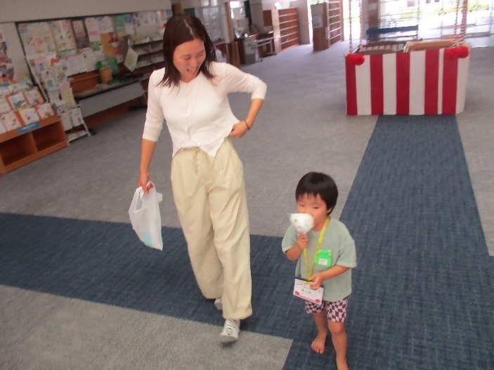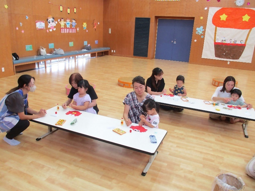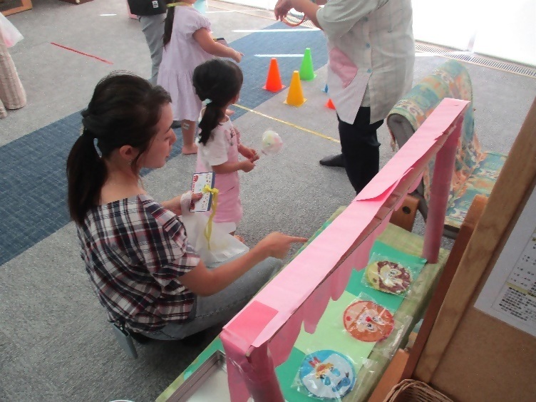 9月は6名のお友だちが参 加してくれました。いつもより参加人数は少なかったのですが、元気いっぱいのchildさんです!今月は、お祭りごっこということで、うちわ製作や縁日を回り楽しみました。うちわ製作では、自分の力で仕上げようと頑張る様子や、見本を見ながら丁寧に作り、作ったものをお友だちと見せ合い喜ぶ姿が見られました。縁日では、輪投げや玉入れなど、成功するまで真剣に挑戦していましたね。楽しそうに参加してくれたみんなの姿にとても嬉しく思いました!来月は、お庭で宝探しをする予定です。皆さんの参加をお待ちしています。
