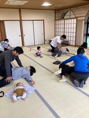パパもいっしょに妊産婦さんいらっしゃいを開催しました。今回はパパがママのガスケケアのお手伝いしてくれました。家に帰ってもいっしょに行ってくれたら嬉しいです。