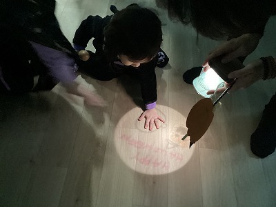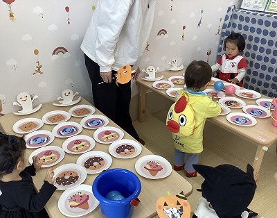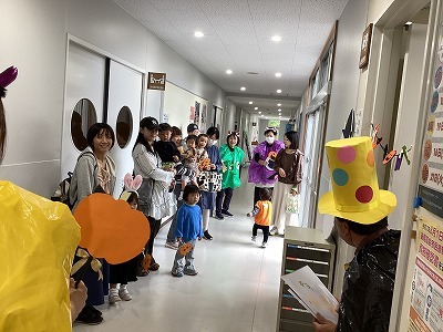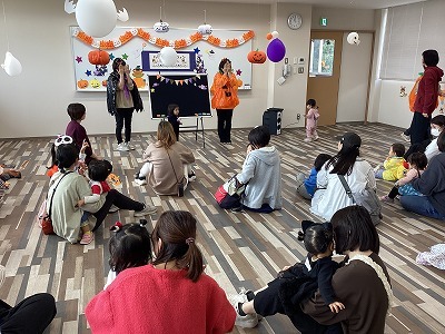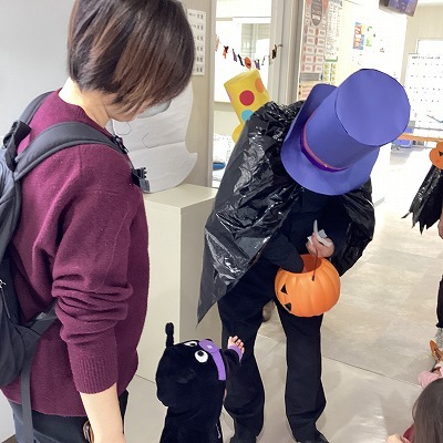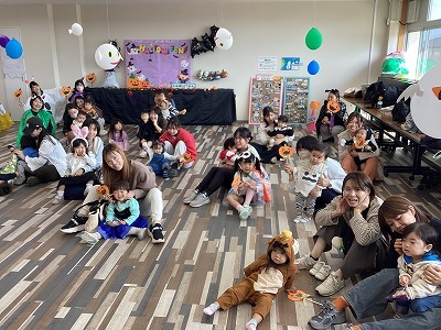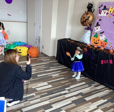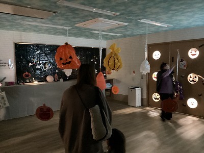 ハロウィンライトやお菓子釣り、シール探しにお化けクイズなど、グループに分かれて館内を散策し、ミッションをクリアするとシールのプレゼント!最後はみんなでダンスを踊ったりフォトコーナーで写真を撮ったり、一日早いハロウィンを満喫することができました。18組41名のご参加でした。