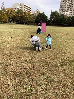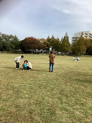 8組18名の参加でした。穏やかな秋晴れの中、滝野公園で「ドラえもん?deどうぞのいす」を行いました。