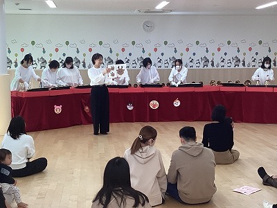 最後は、ハンドベル体験!きらきら星をみんなで演奏しました。19組40名の参加でした。