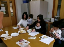 ママさん達も熱心にお話を聞かれ、試食ではお子さんも一緒に食べる事が出来ました。普段苦手な野菜を食べられたお子さんもいらっしゃって、ママさんもとても喜ばれていましたよ♪今回のメニューは「野菜チップス、ベーコンのピラフ、根野菜のスープ」でした。