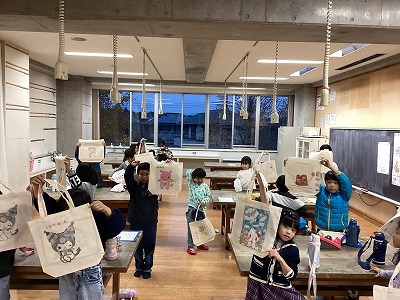 いにはの小学校図工室でエコバッグ作りを行いました。