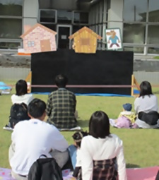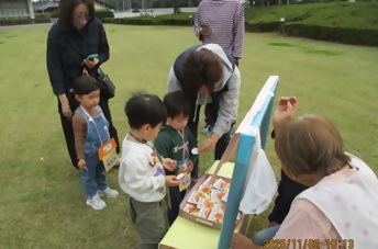11月のわんぱくサンデーは、天気も良く、中庭でコンサート。ふるさとバンドさんが参加してくださり、「3びきのこぶた」のお話を行いました。子どもたちはお話も熱心に観ていましたが、みんなで体を動かす場面も一生懸命参加することができました。ふるさとさんの演奏に合わせて親子の笑顔も加わりとても楽しいコンサートになりましたね。皆さんいろいろな場面でたくさんの力を貸していただいてありがとうございました。幼稚園児が一緒に前で元気に踊ってくれてとても心強かったです。サンデーは毎回お父さんお母さんそして今回は小学生のお友だちもお手伝いしてくれて感謝の気持ちでいっぱいです。