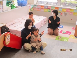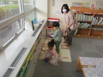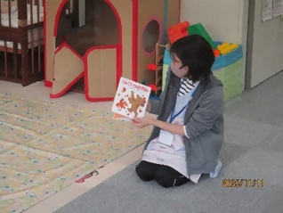 製作の前に、どんぐりの絵本を読んで、どんぐりの木のイメージを膨らませます。