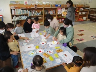 みんなでどんぐり拾いを楽しんだ後は、カレンダー製作スタート。