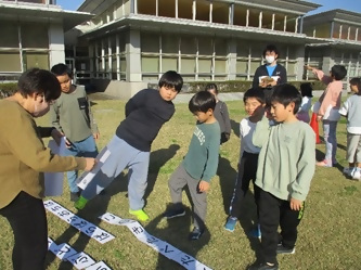 第2期の3回目も10名全員が参加。3回通して全員参加することができました。今回は謎解きからスタート。初回から行ってきたので、迷うことなく各部屋を回ることができます。中庭にも出て、リレーや玉入れ、鬼ごっこを行い、めいっぱい体を動かしました。ことば探しでは協力し合って、広い中庭から文字を探し出すことができました。レクホールに戻ったら、楽しみにしていたお菓子ビンゴです。子どもたちが希望したお菓子が景品で、真剣な表情で数字とカードを見ていました。最後に自己評価チェック表を書きましたが、コースを通してお友だちと活動してきた時間が良い経験になっていれば良いと思います。初回の緊張感が和らぎ、初めから終わりまで、みんなが笑顔だった2期の最終回でした。ありがとうございました。