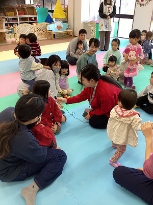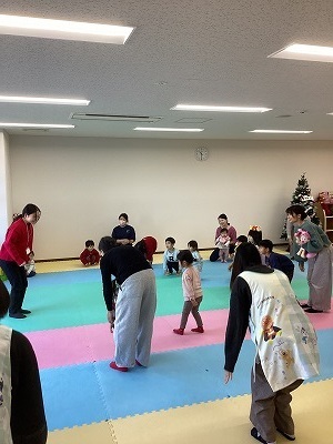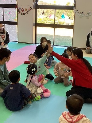 大学生のボランティア先生を講師としてお迎えして行いました。職員が聞き取れない英語もこどもたちのほうが理解し行動に移すことができていました。講師の先生の指示を聞いて雪だるまやクリスマスツリーを完成させることができました。