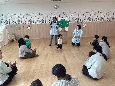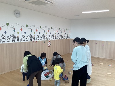 にこにこハッピー(1歳児)の2回目に、6組12人の元気なお友達とお母さんが参加してくれました。