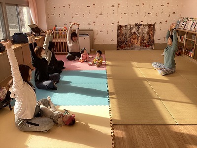 ゆったりと和やかな時間の中で親子でふれあいヨガを楽しんで頂きました。