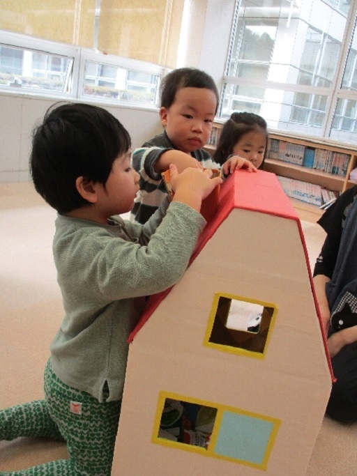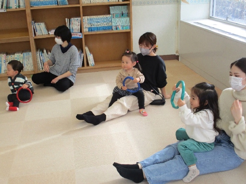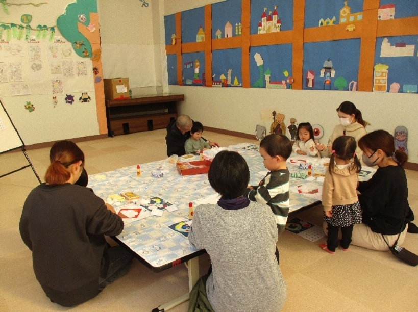 今月は、12月と1月のカレンダーを作りました。12月はクリスマスリースと雪だるまのカレンダーでした。1月はお花紙を丸めて作った大きな鏡餅のカレンダーです。1度に2ヶ月分作りましたが、親子で協力して完成しました。絵本の読み聞かせの後、子どもたちがサンタさんになって、お家にプレゼントを全て入れることができました。カレンダー製作やタイムの中で、お母さんやお父さんの力を借りずに、自分の力で頑張ろうとしている姿があり、成長を感じます。そして、そんな子どもたちを保護者の方たちと一緒に見ることができとても嬉しいです。残りわずかですが、子どもたちの成長を最後まで一緒に見守らせてください。1月は、2月のカレンダーを作りますので、また、お待ちしております。