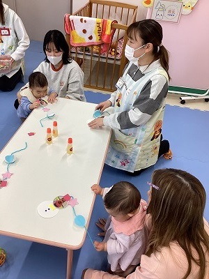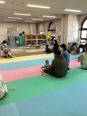 親子で交流しながら和やかな雰囲気の中、ふれあい遊びや制作を行いました。お子さんの写真を用いた雪だるまの吊るし飾りの完成を目を細めて眺める親御さんの姿が印象的でした。