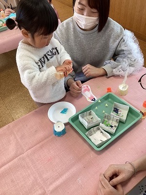 足形を活かしたペンギンさんを作りました。大きいペンギン小さいペンギン・・・