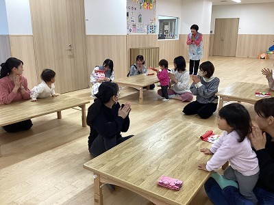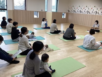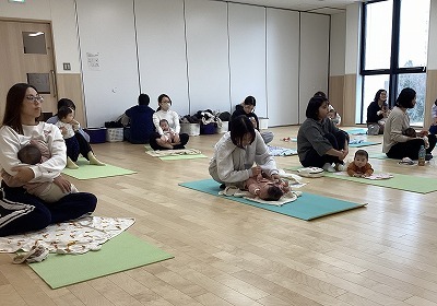 和やかな雰囲気の中ベビーマッサージを行いました。親子でスキンシップを取りながら、体の不調や心の安定、深い睡眠に効くそうです!日常に上手に取り入れたいですね!