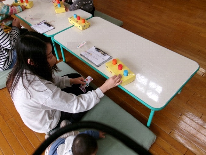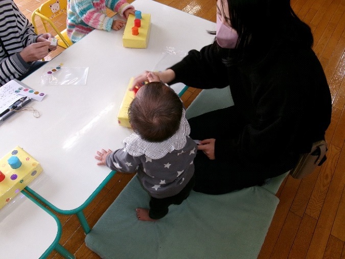 手作り玩具を行いました。1歳半までのお子さんを持つ保護者の方対象のプログラムでお子さんに簡単な手作り玩具を作る事ができるプログラムとなっています。