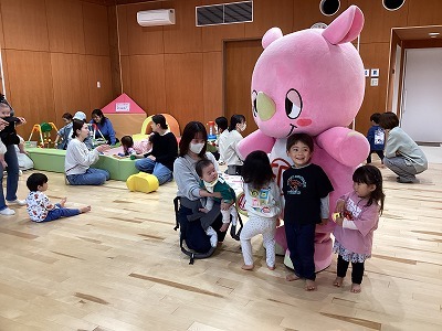 6月より本埜公民館で行っていた支援センターですが、滝野に戻ってきました。いんザイ君の登場もあって、たくさんの方が来てくれて、いんザイ君に抱きついたり、一緒に写真を撮ったりしてリニューアル記念を楽しんでくれていました。
